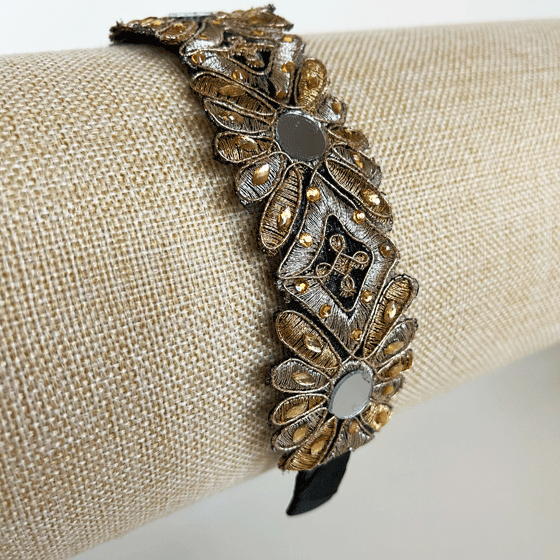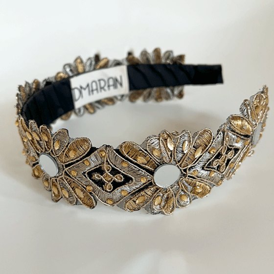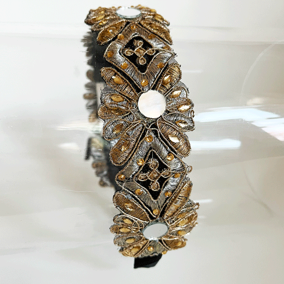 GOLD GUIPURE LACE HEADBAND WITH TINY MIRRORS